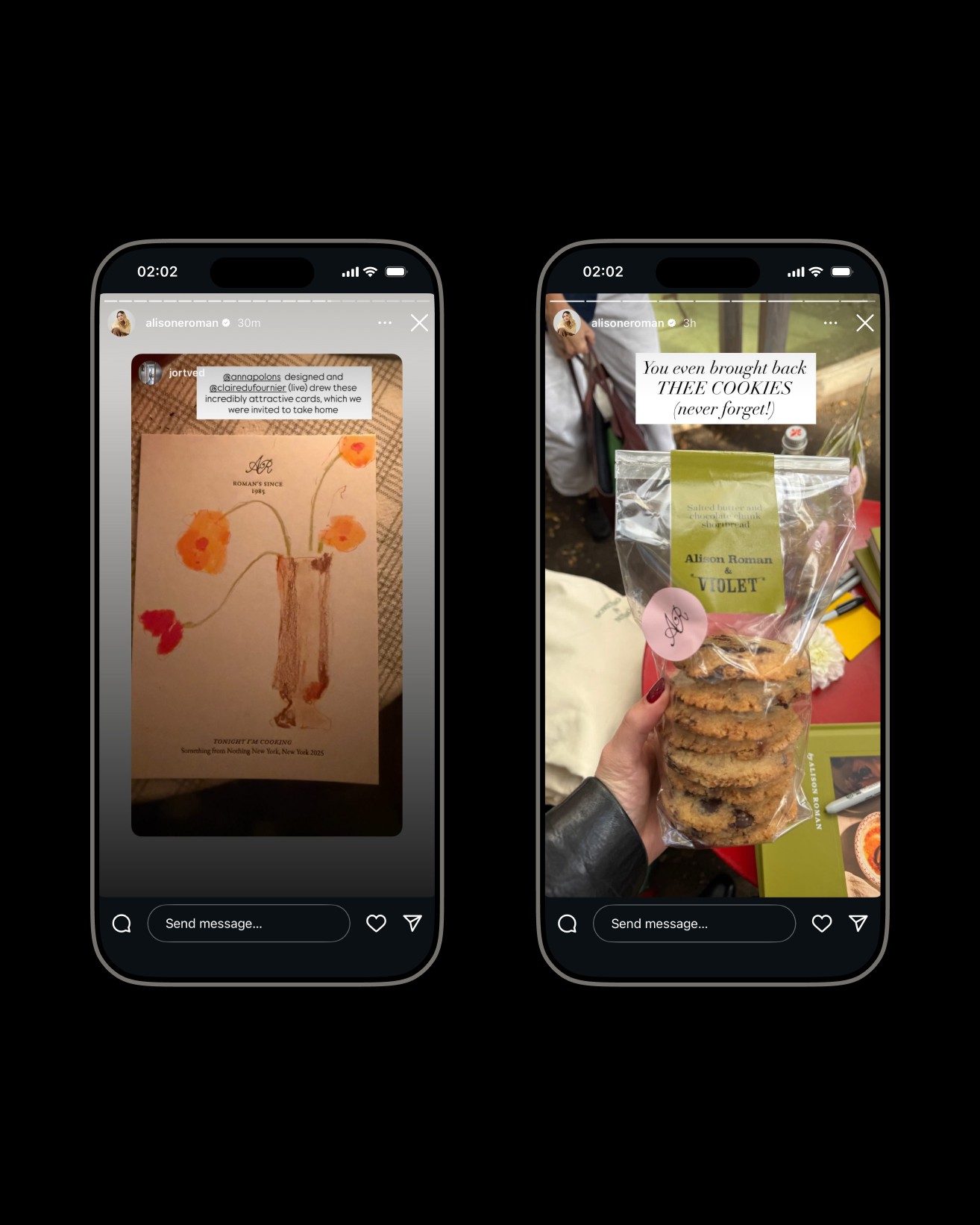 Tour branding and creative direction for Alison Roman and the bestselling cookbook "something from nothing." From key art to custom mic wraps, we translated Alison's “deceptively simple, casually stylish, and impossibly delicious” approach to a tour identity that’s straightforward and unexpectedly loose in equal measure, folding together soothing fields of green, bold statements of purpose, and a cheeky scripted sign-off. we also developed a custom "AR" maker's mark for Alison AND A BRAND NEW digital identity for her website and newsletter. PART late-night talk show, PART golden mushroom soup with orzo and a pat of butter. CHEF'S KISS.