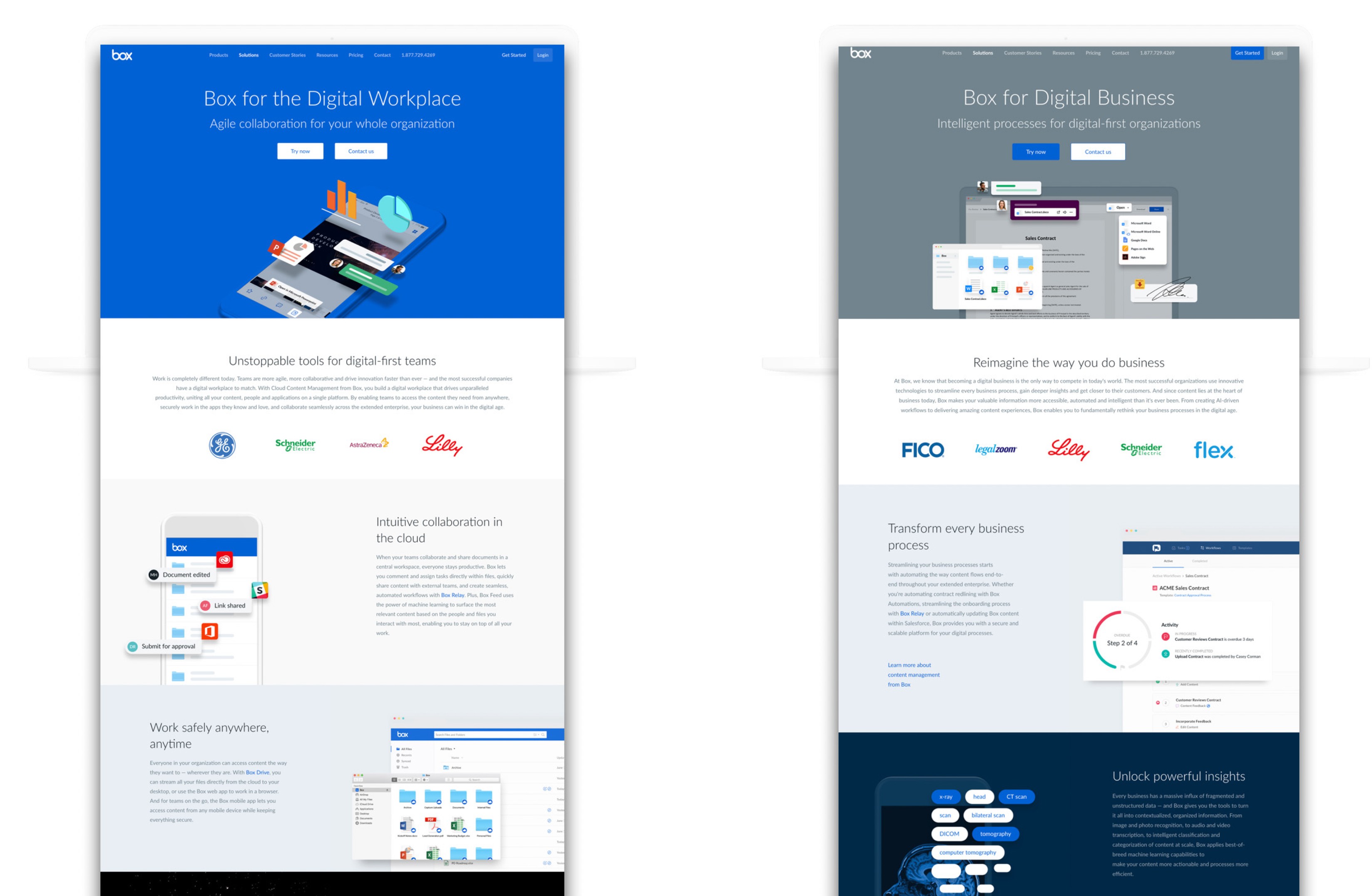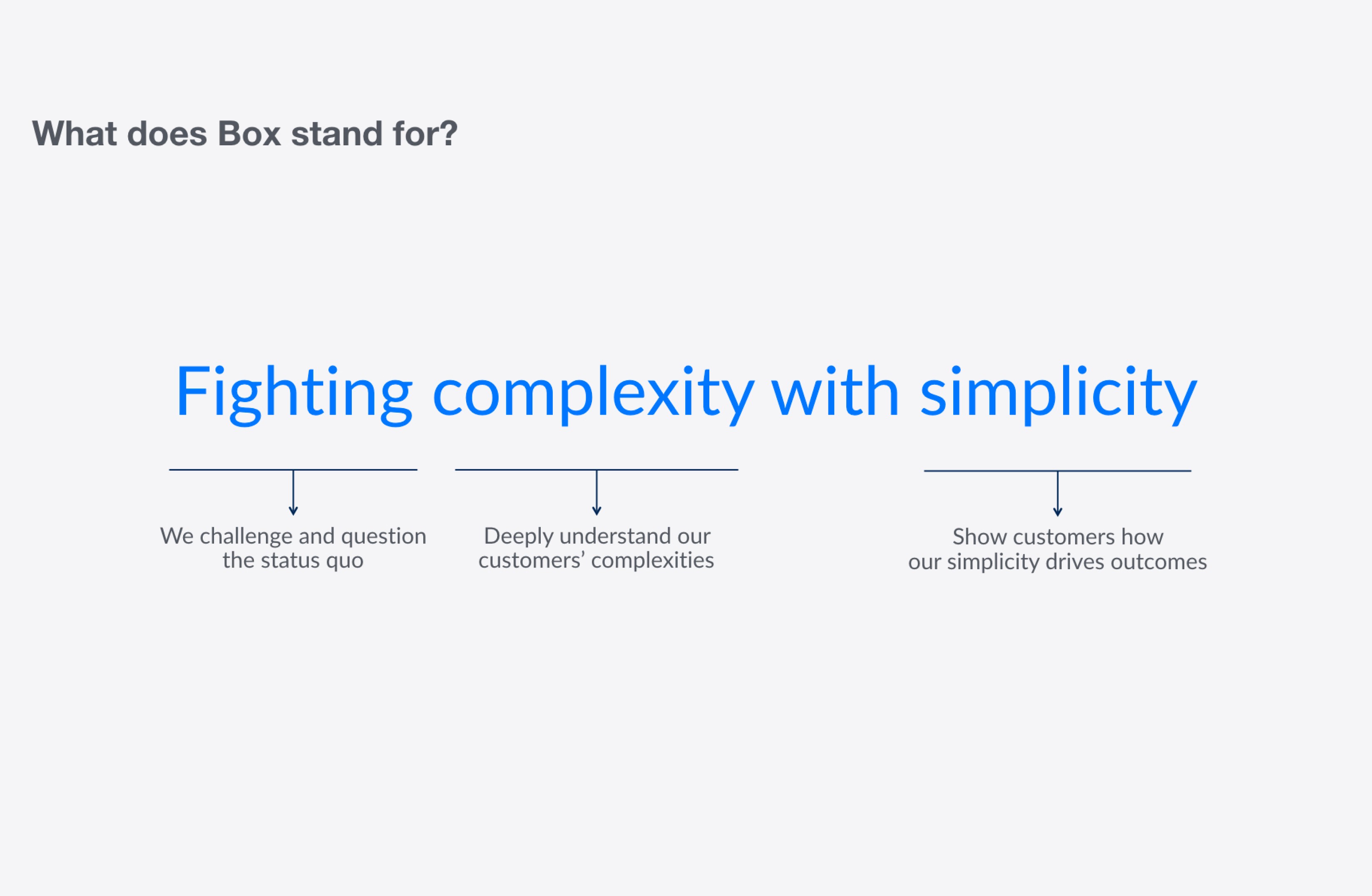 Often referred to as “Dropbox for business,” Box defined itself for years through its competitor – without offering an ownable vision or perspective. Two guided Box through a fundamental repositioning exercise, transforming an entity with low consumer awareness and a convoluted brand story into one with clear value and actionable strategy: driving success through efficiency. Today, Box is widely respected as an enterprise-preferred, consultative, system-to-people brand that focuses on providing management solutions and outcomes to larger business challenges.