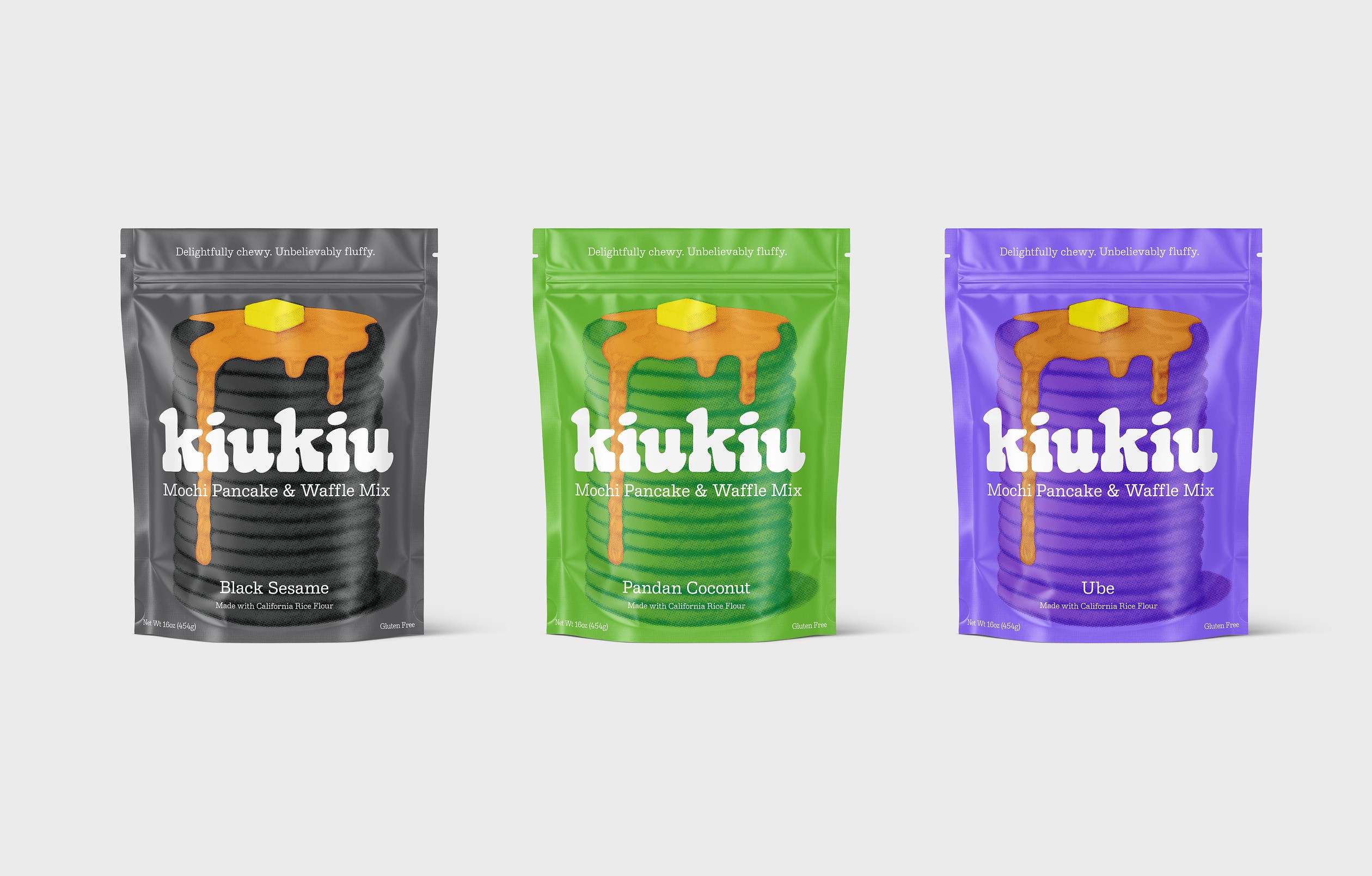 Pop art pancakes. We designed the identity and packaging system for KiuKiu, a new line of mochi sweet treats. With a design driven by quality and flavor, the vibrant, playful IDENTITY helpS KiuKiu stand out on crowded supermarket shelves and captureS the CONTEMPORARY indulgent spirit of the brand.